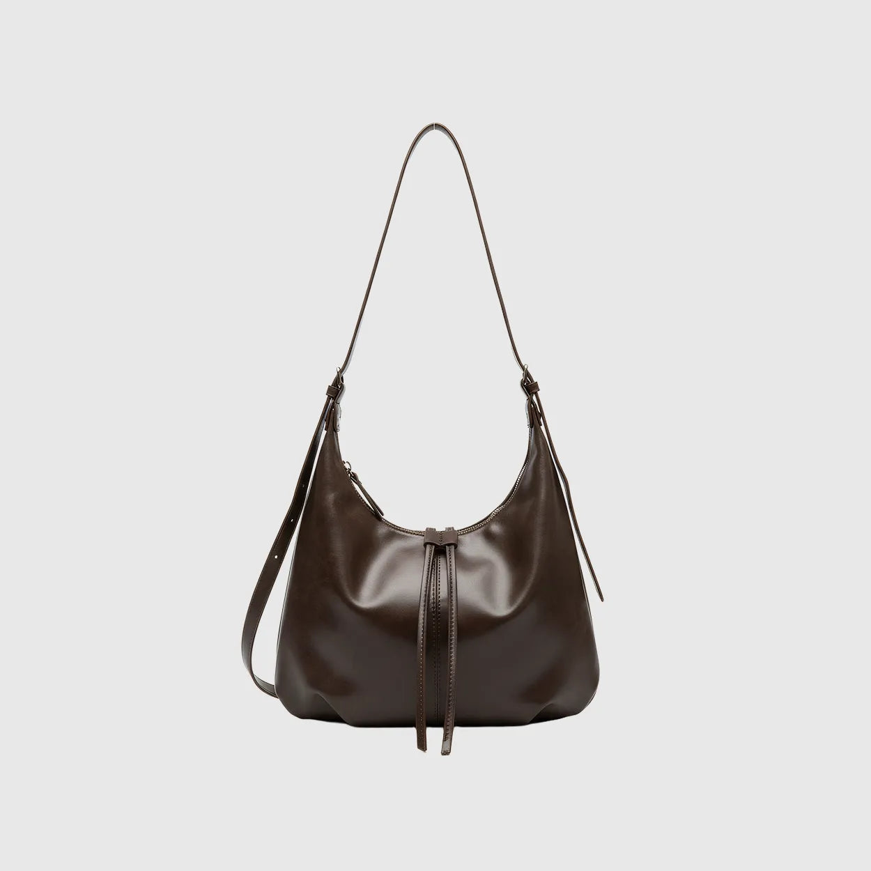 Veralina embodies effortless sophistication. With its sculpted half-moon shape and vintage softness, it elevates every outfit - from oversized knits and corduroy skirts to linen blazers and denim. Carry it under your arm for that subtly Parisian touch during cozy café mornings, art gallery strolls, or evening dinners. Wherever you go, Veralina adds quiet confidence and timeless charm.