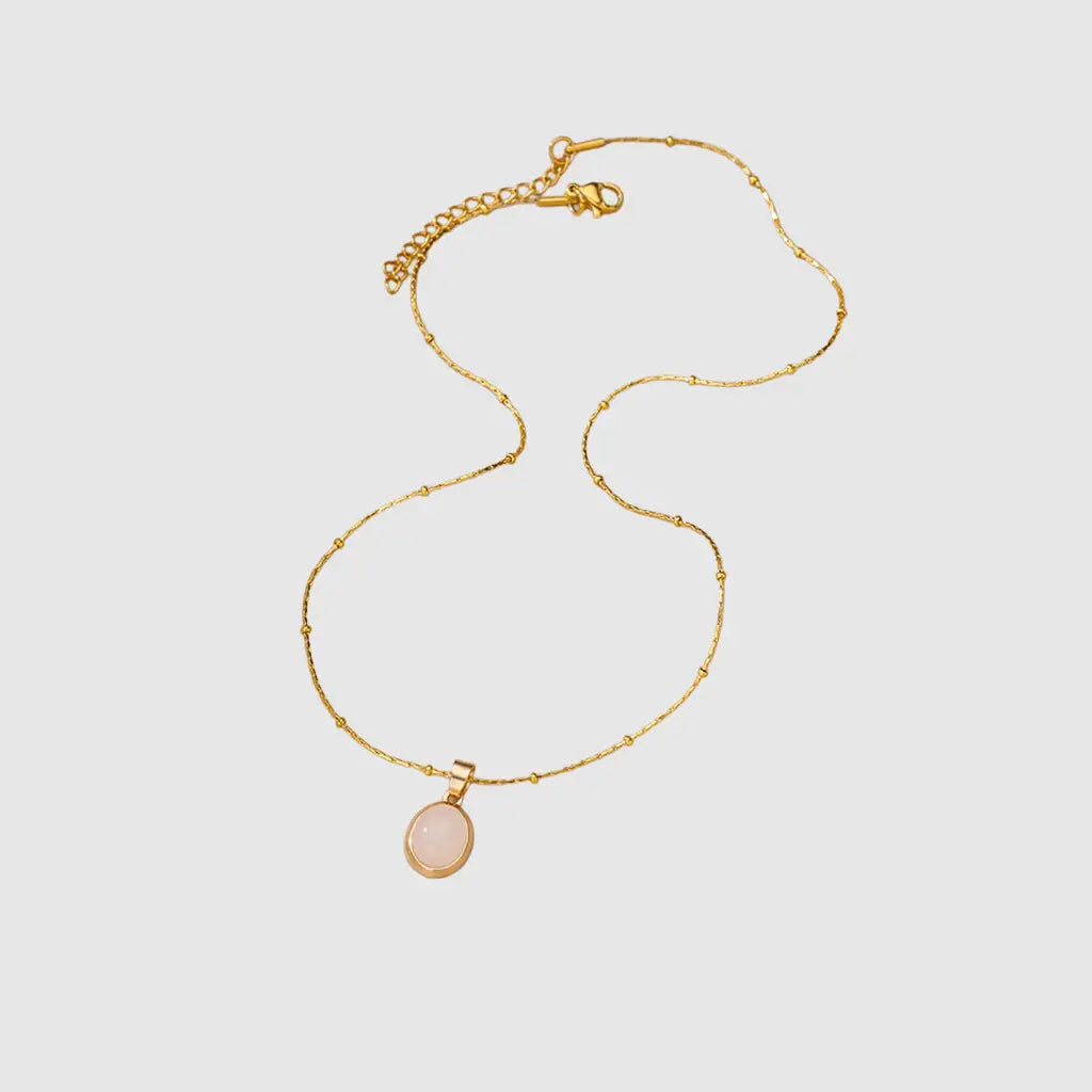 Aracleo is de ketting die je keer op keer zult dragen – eenvoudig, chique en eindeloos elegant. Met zijn delicate gouden ketting en ovale stenen hanger in zachte tinten lichtblauw, wit of groen, is het een sieraad dat net zo moeiteloos werkt op kantoor als bij het diner. Minimalistisch, veelzijdig en tijdloos mooi – Aracleo is subtiele luxe voor elke dag.