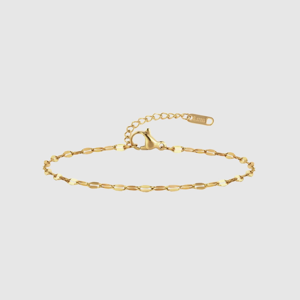 Vioisa is eenvoud op zijn best – een fijne ketting die straalt met alledaagse elegantie. Lichtgewicht en veelzijdig, perfect om te combineren of solo te dragen wanneer je gewoon een vleugje gouden chic wilt. Het soort armband dat als een tweede huid aanvoelt, maar elke beweging net iets sierlijker maakt.