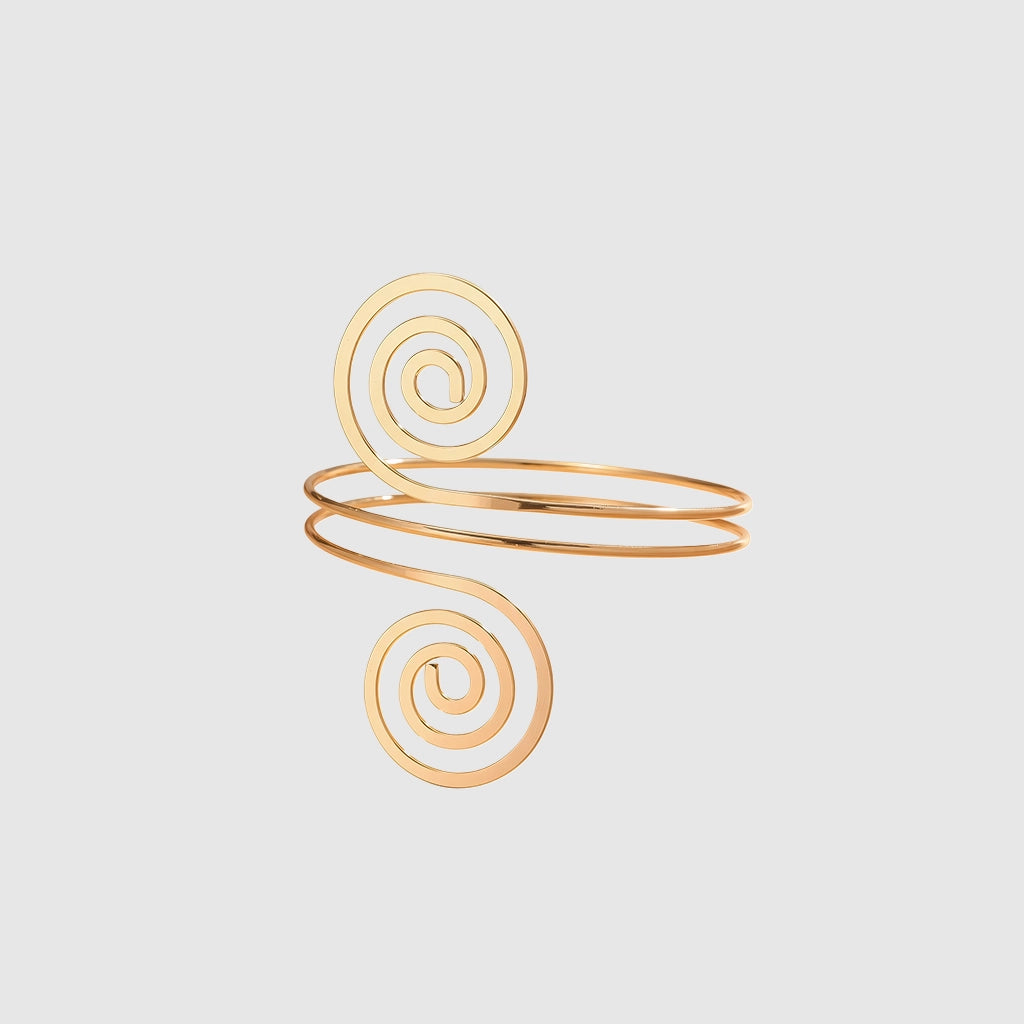 Zarelia is meer dan sieraden – het is een gouden spiraal van kracht. Met zijn gedurfde dubbele spiralen die zich om je arm wikkelen, verandert deze armband je look in moderne godinnenchic. Een stuk gemaakt voor het Chalisa-meisje dat haar stijl en energie bezit.