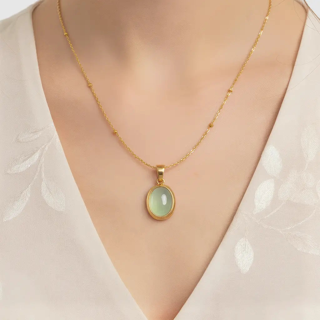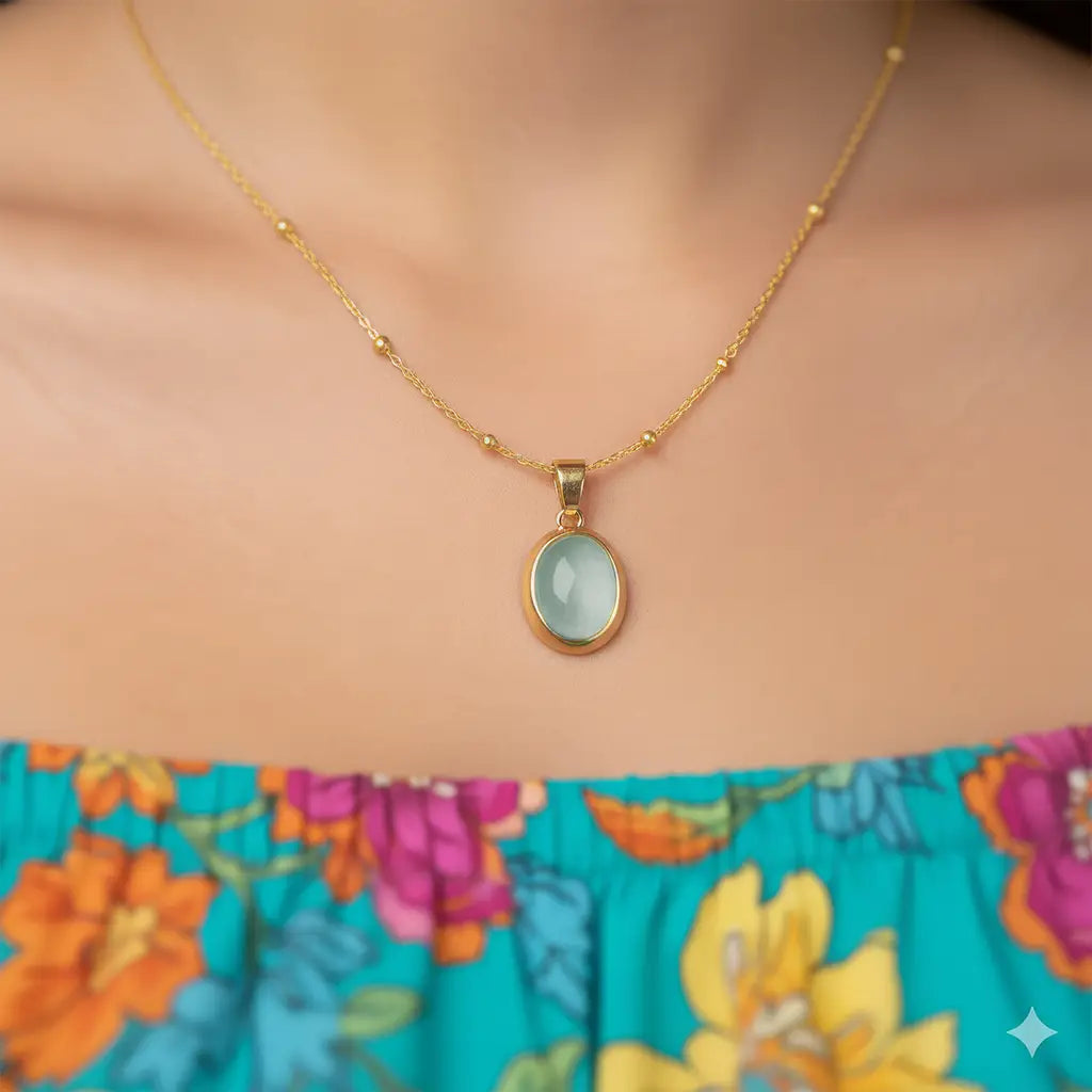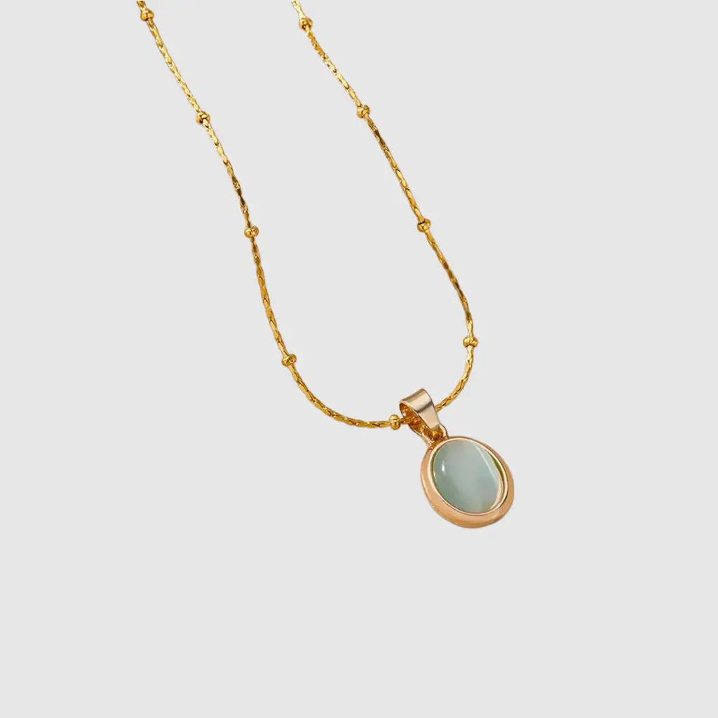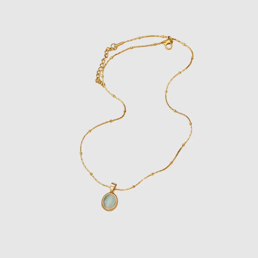Aracleo is the necklace you’ll wear again and again – simple, chic, and endlessly elegant. With its delicate gold chain and oval stone pendant in soft shades of light blue, white, or green, it’s a piece that works as effortlessly in the office as it does at dinner. Minimalist, versatile, and timelessly beautiful – Aracleo is subtle luxury for every day.