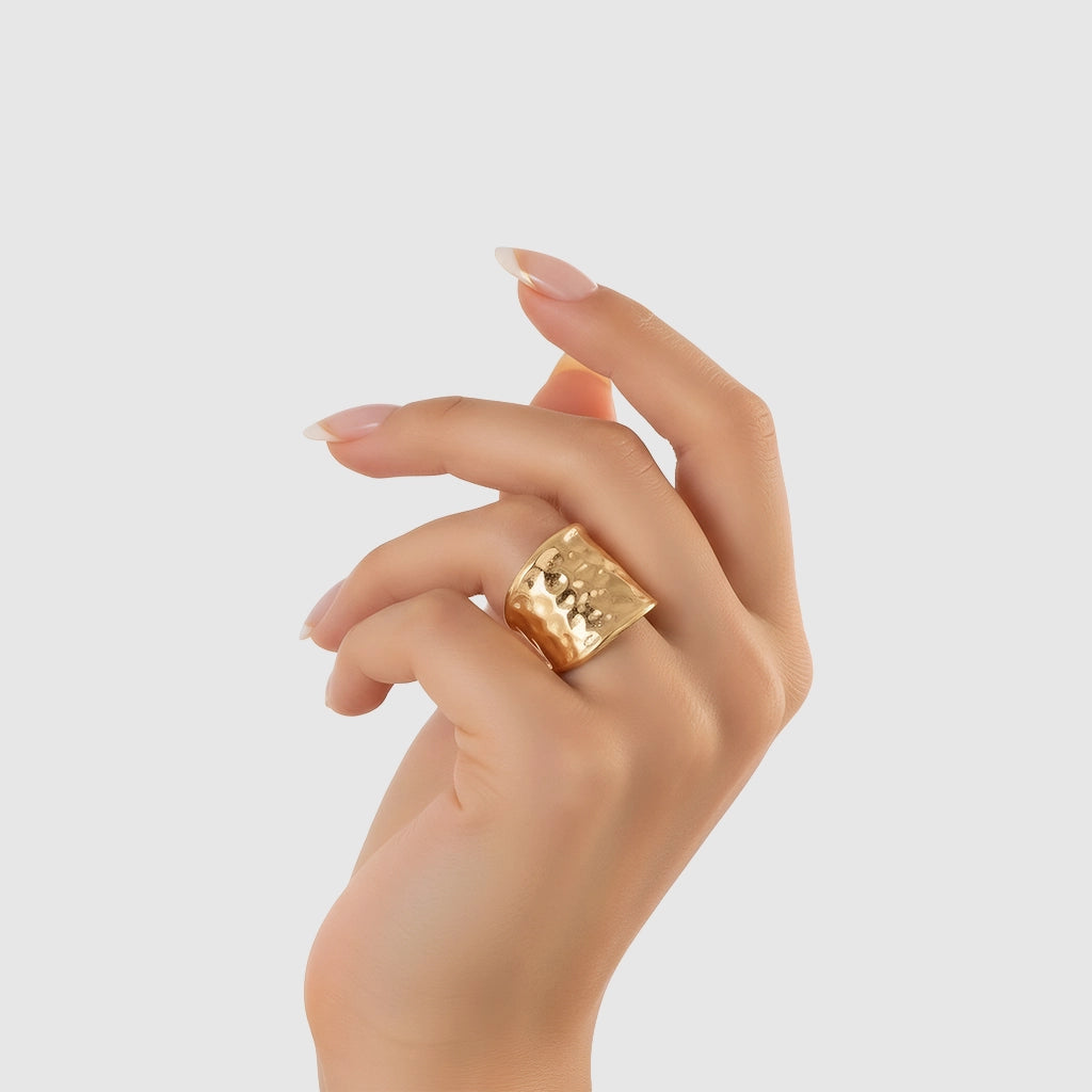 Aravel is not just a ring – it’s a bold declaration of individuality. With its wide hammered band and raw texture, this piece feels both ancient and modern, like jewelry that carries stories yet to be told. Wear it to transform a simple outfit into a statement of confidence and creativity.