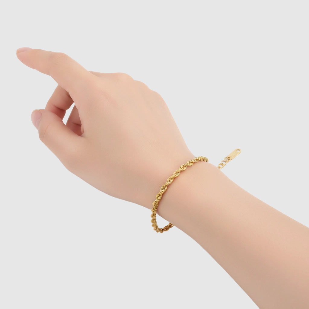 Arinavi is where timeless meets trendy. Its twisted rope design glimmers with golden elegance, adding subtle movement to your every gesture. Made from durable, waterproof stainless steel, it’s the bracelet you’ll never want to take off – sleek alone, striking when stacked.