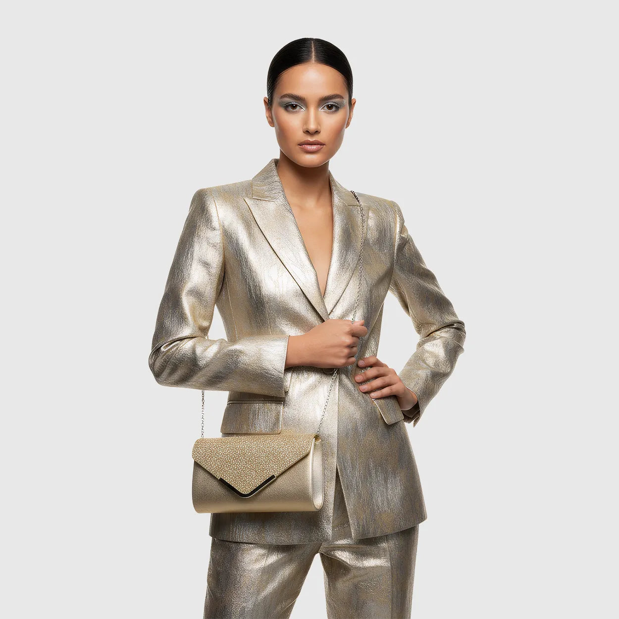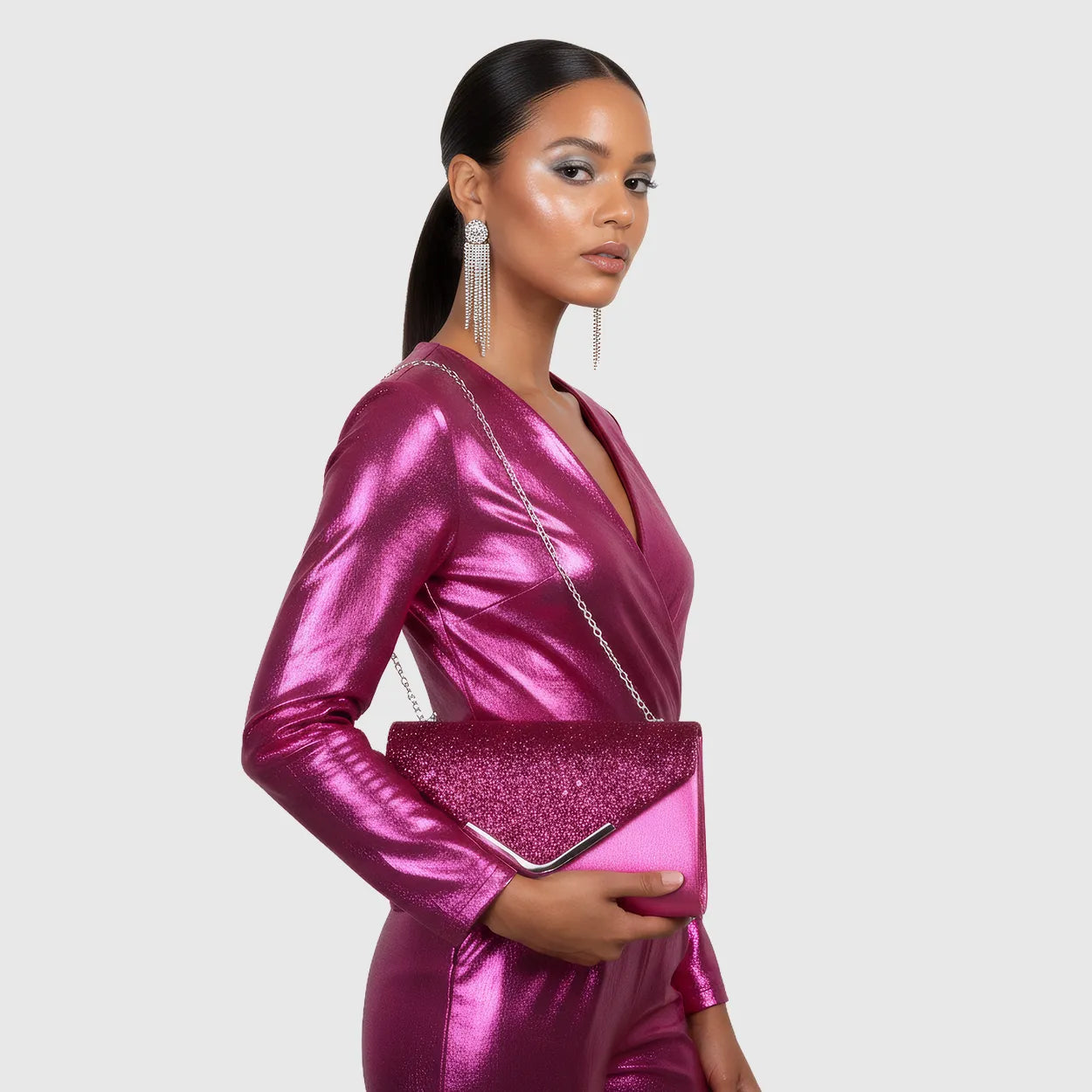 Sparkle that speaks. This glittering sequin envelope clutch catches every light, your radiant companion for weddings, galas, and unforgettable nights.