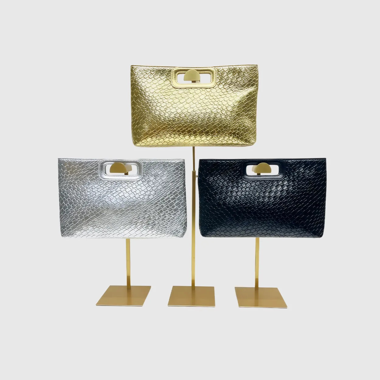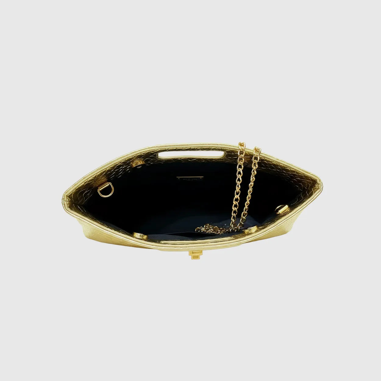 Inspired by the city of gold, Dubai turns every night into a statement. A metallic snakeskin clutch that radiates wealth, confidence, and irresistible allure.