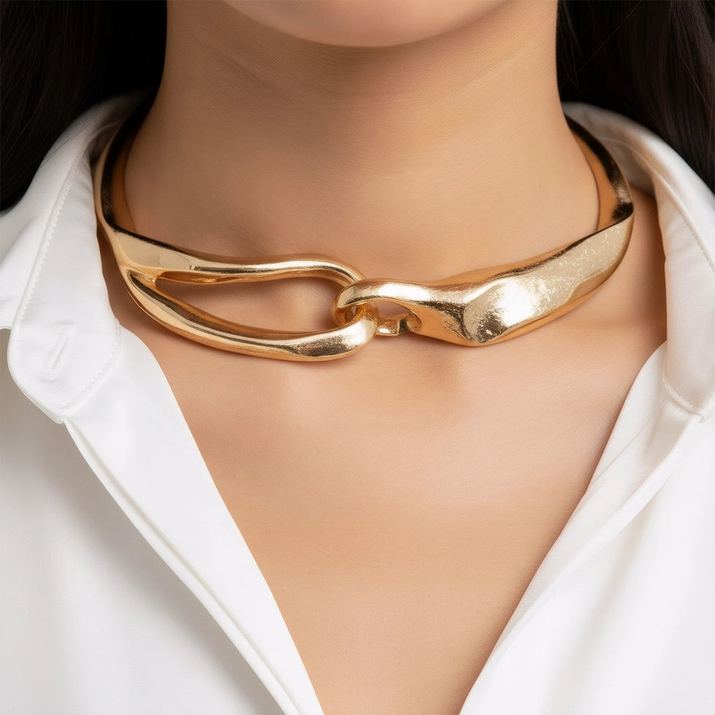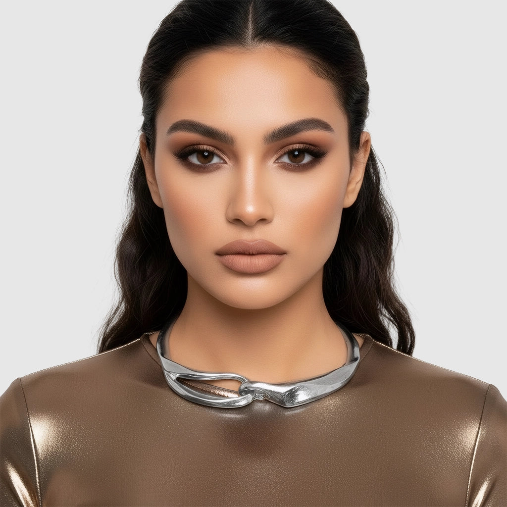 Gavriela isn’t just a necklace – it’s attitude cast in metal. With its heavy torque design and irregular chain form, this piece radiates punk edge and unapologetic confidence. Whether in gold or silver, Gavriela makes every outfit a declaration of bold individuality.