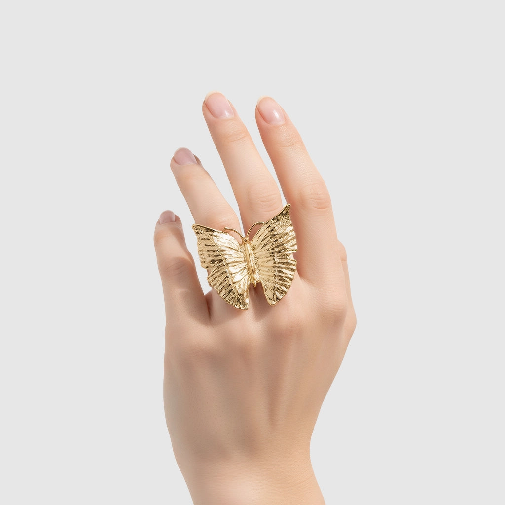 Inasera tells a story of transformation – the butterfly as a timeless symbol of beauty, freedom, and change. Its textured wings catch the light with every movement, making it more than just a ring – it’s a statement of your bold, evolving self.