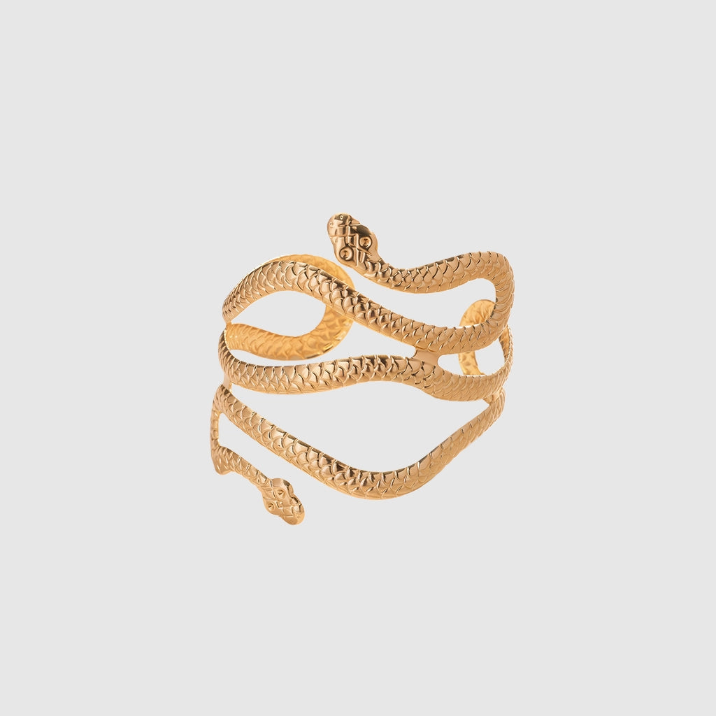 Two heads, one symbol – Lumiver embodies duality and eternal power. The serpent’s textured body wraps elegantly around the arm, creating a cuff that feels both fierce and refined. A piece that transforms every outfit into a story of confidence.