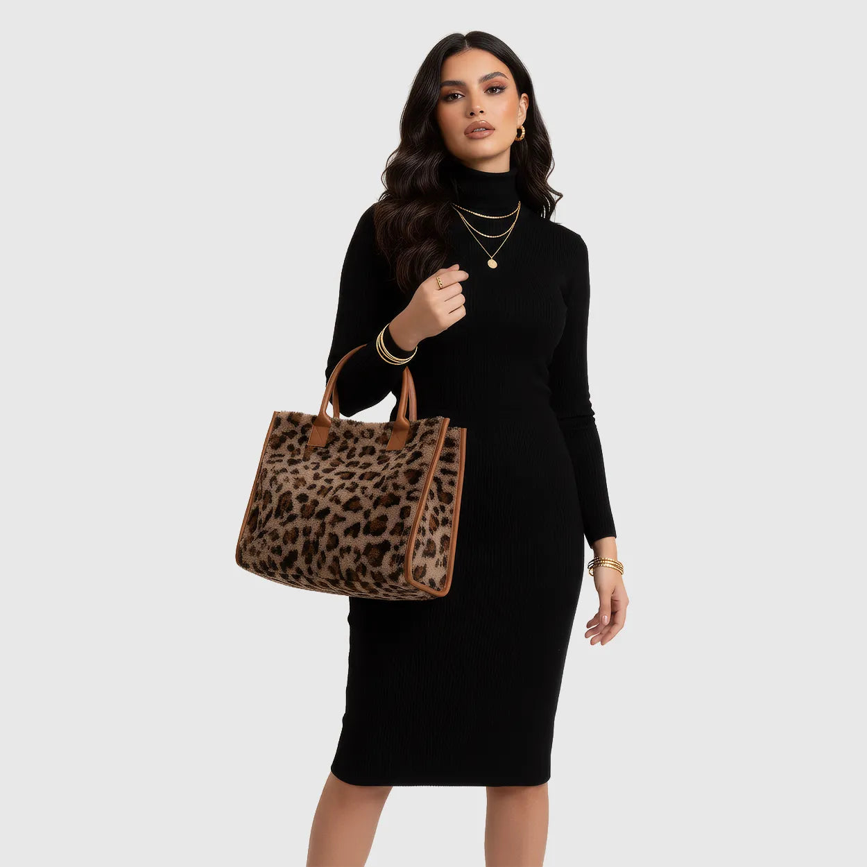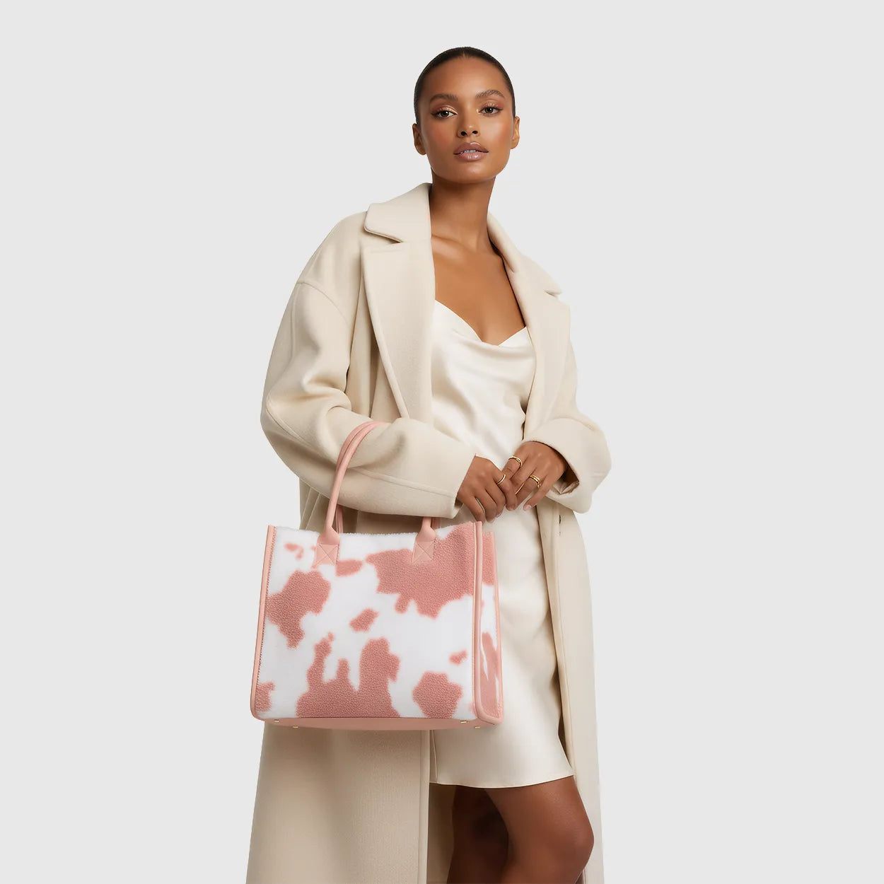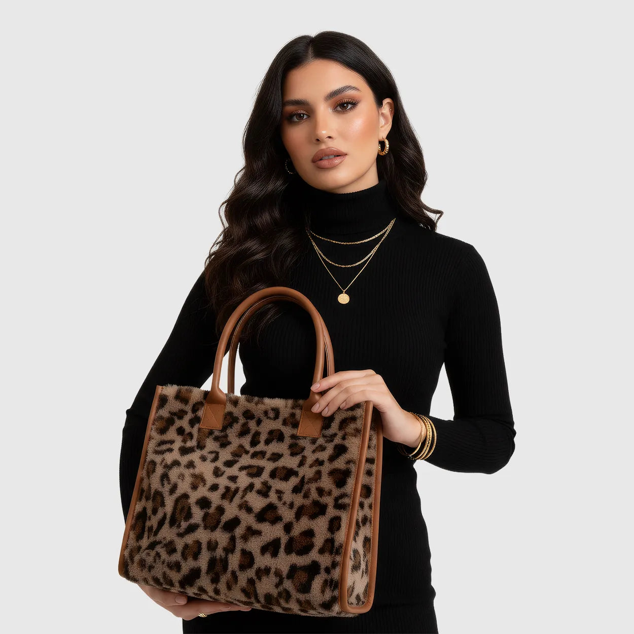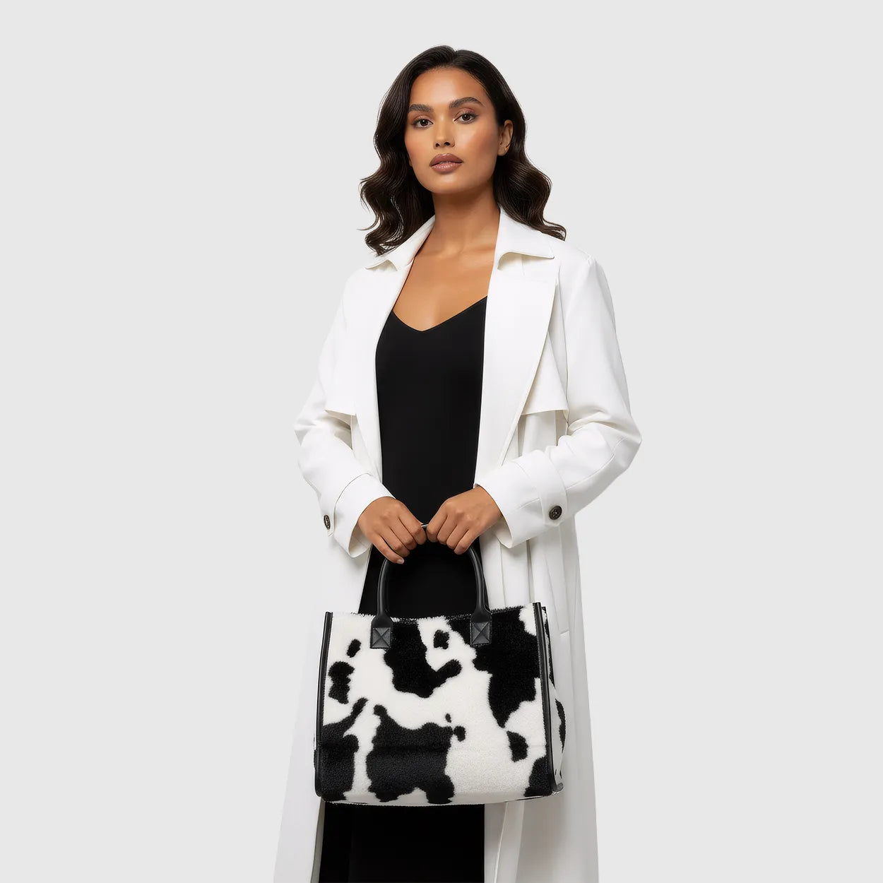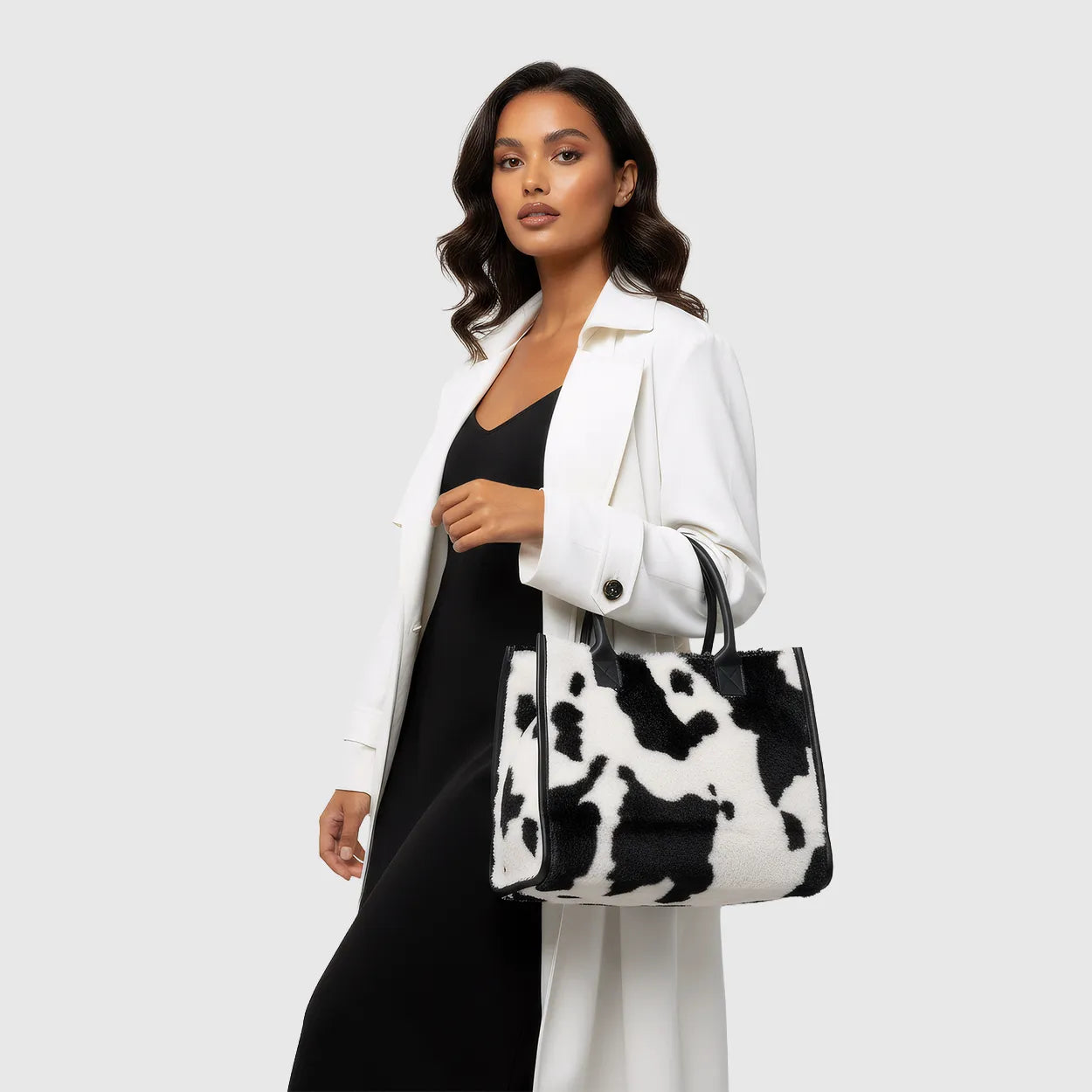 Soft, bold, and beautifully wild. This plush faux fur tote in cow or leopard print wraps winter warmth and street chic into one irresistible statement.