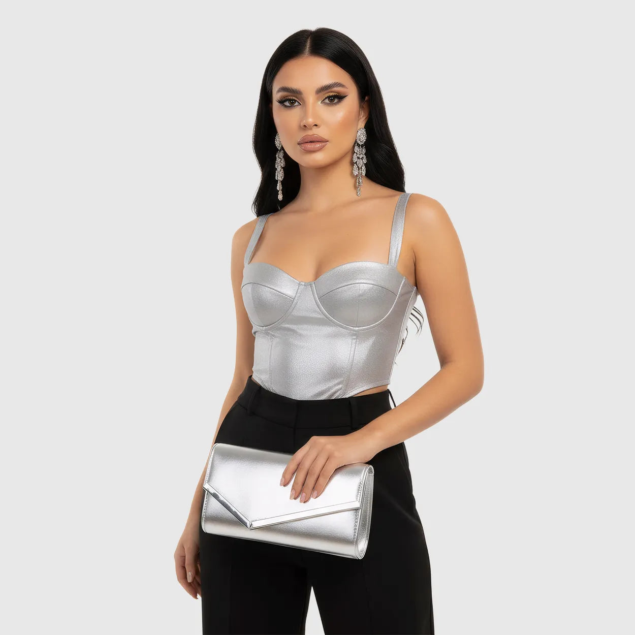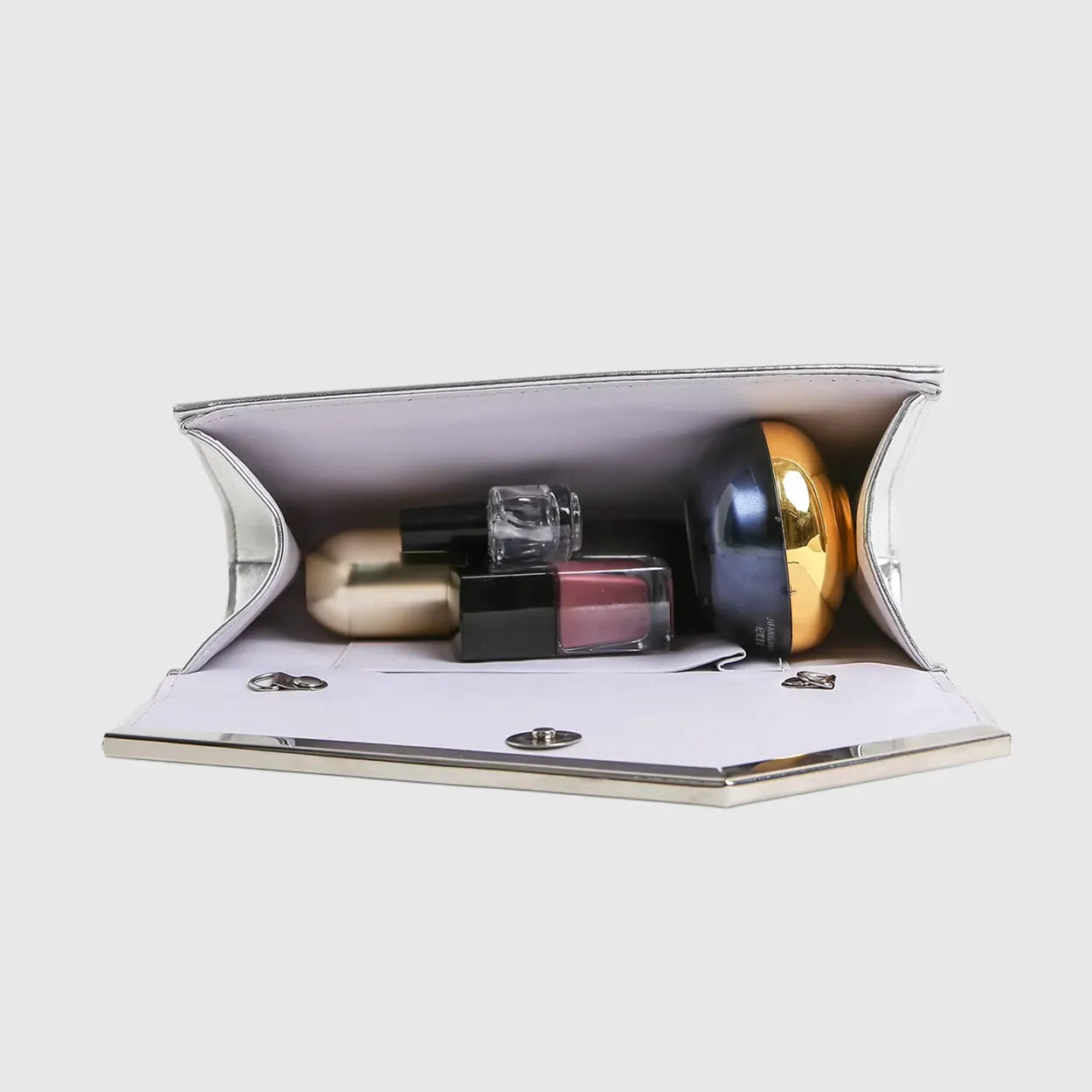Urelvia isn’t just a clutch - it’s your spotlight. Sleek, metallic, and magnetic, it turns every step into a statement from party to midnight elegance.