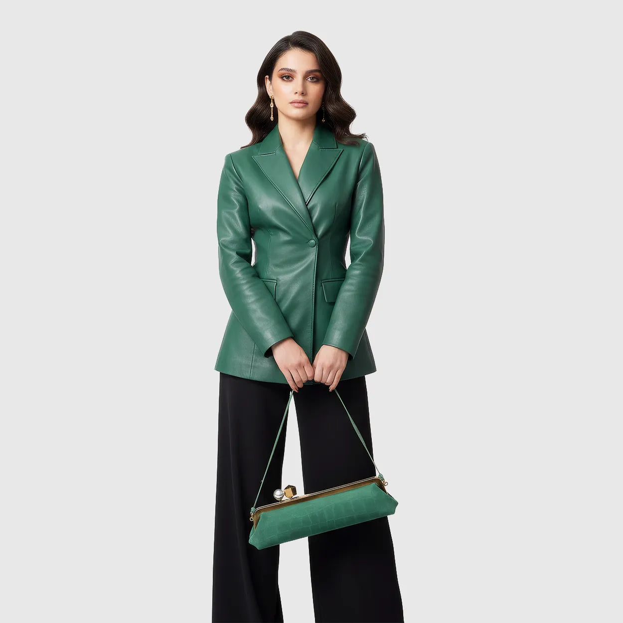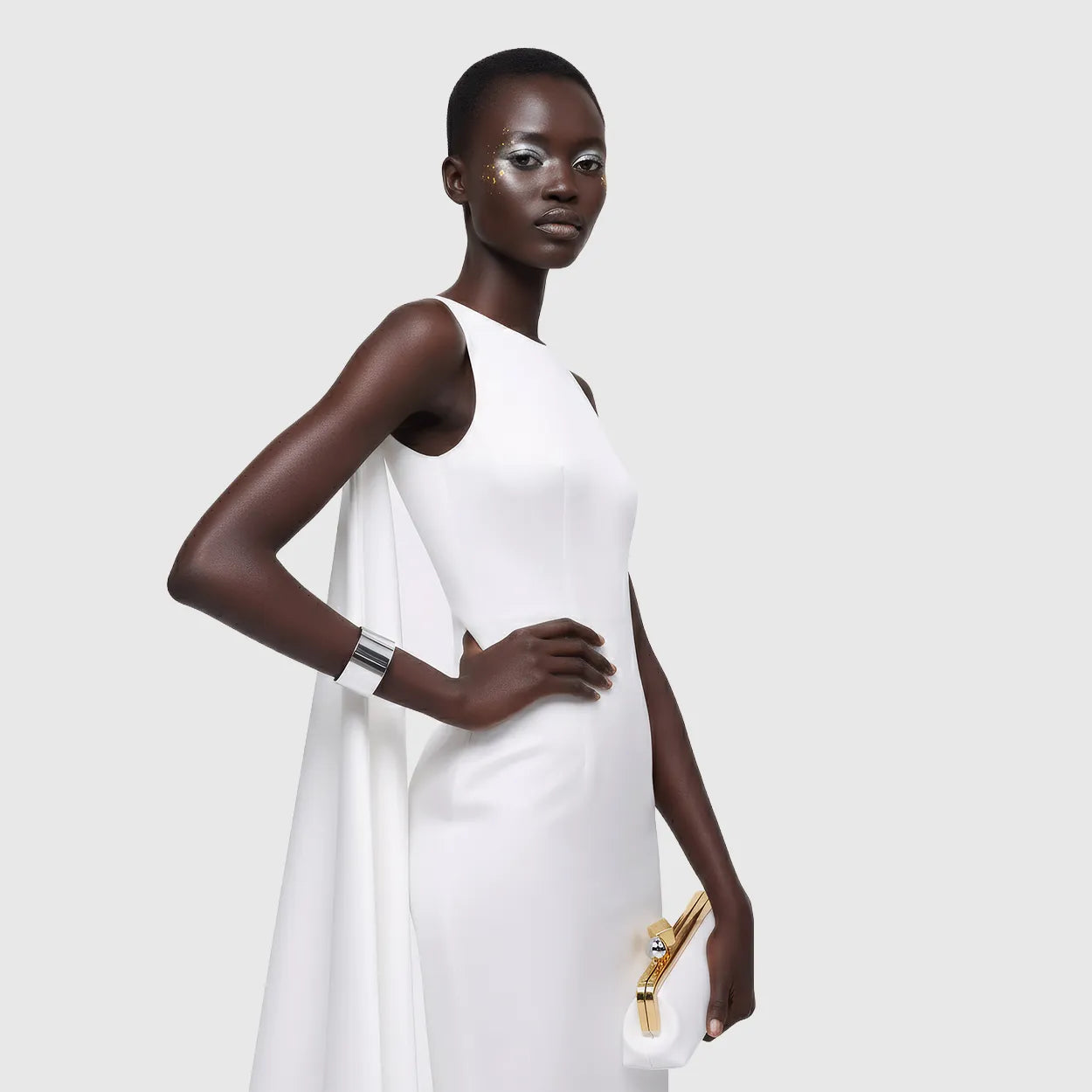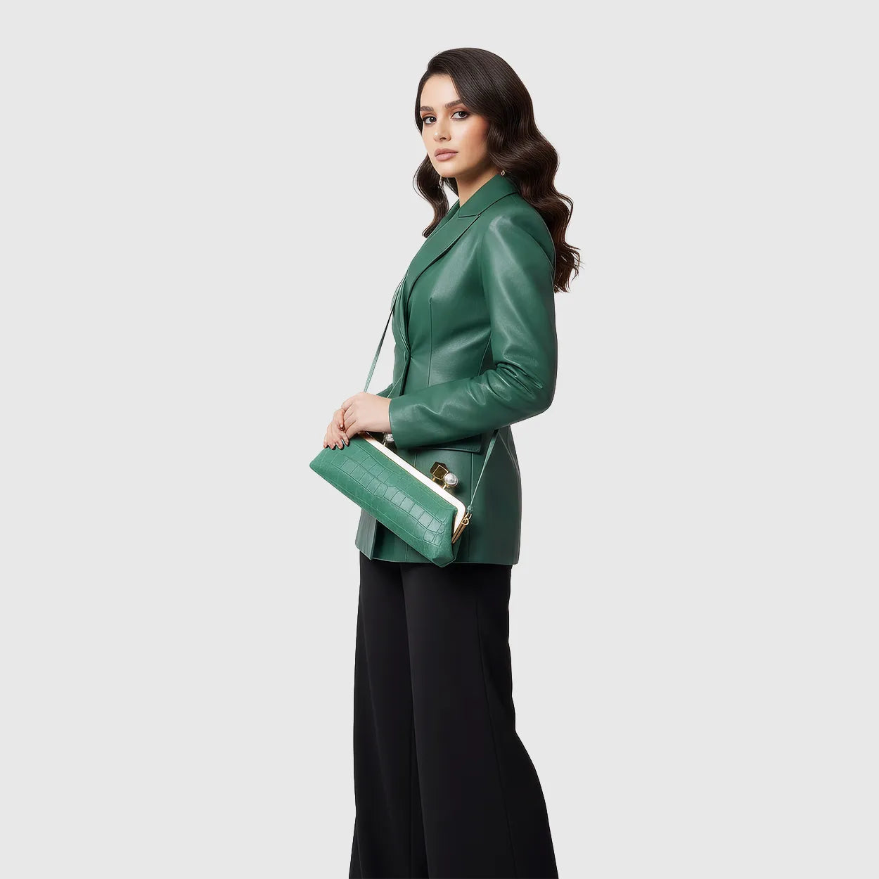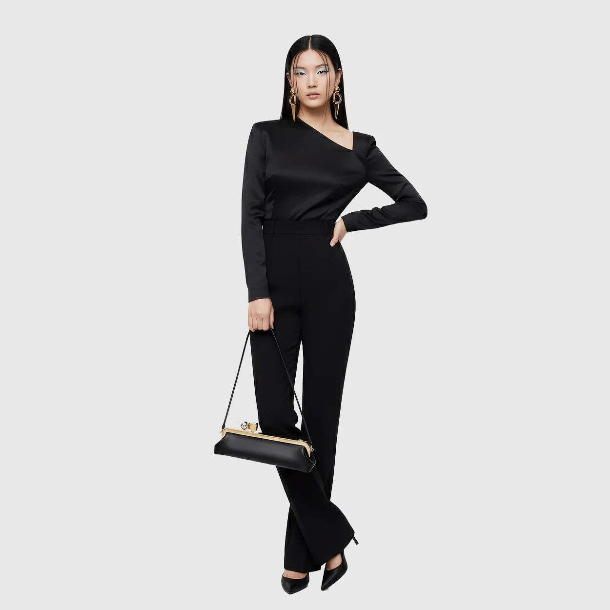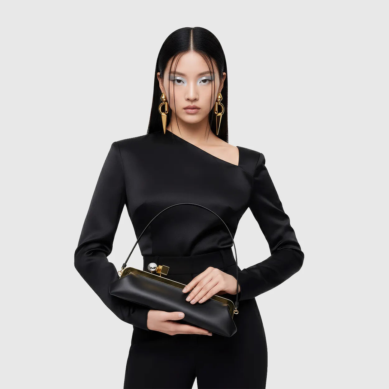 Elegance refined. This sleek PU leather baguette with metallic clasp and frame moves effortlessly from polished soirées to modern everyday grace.