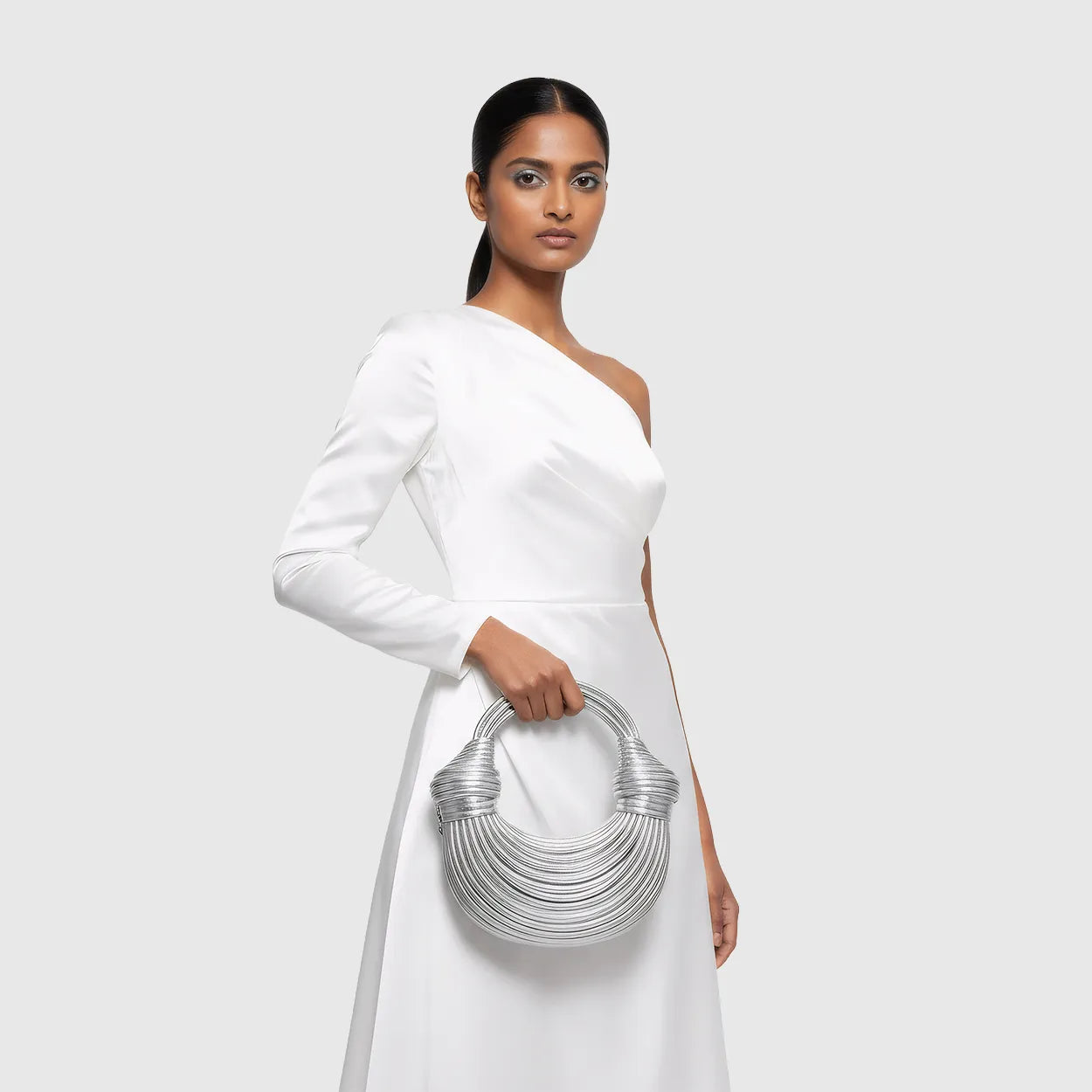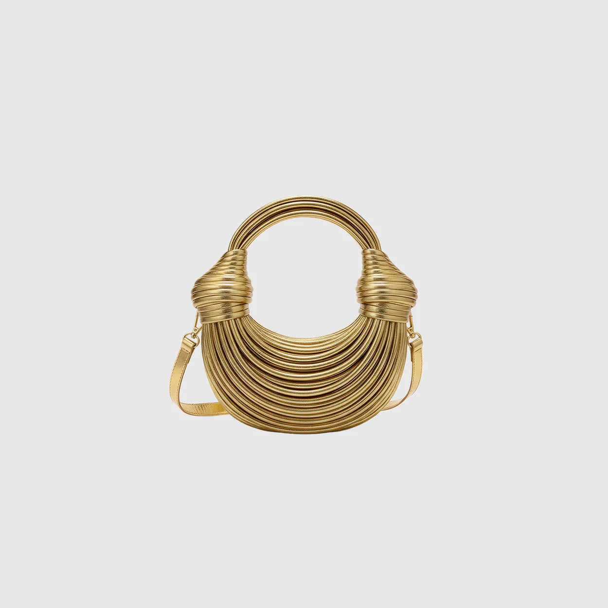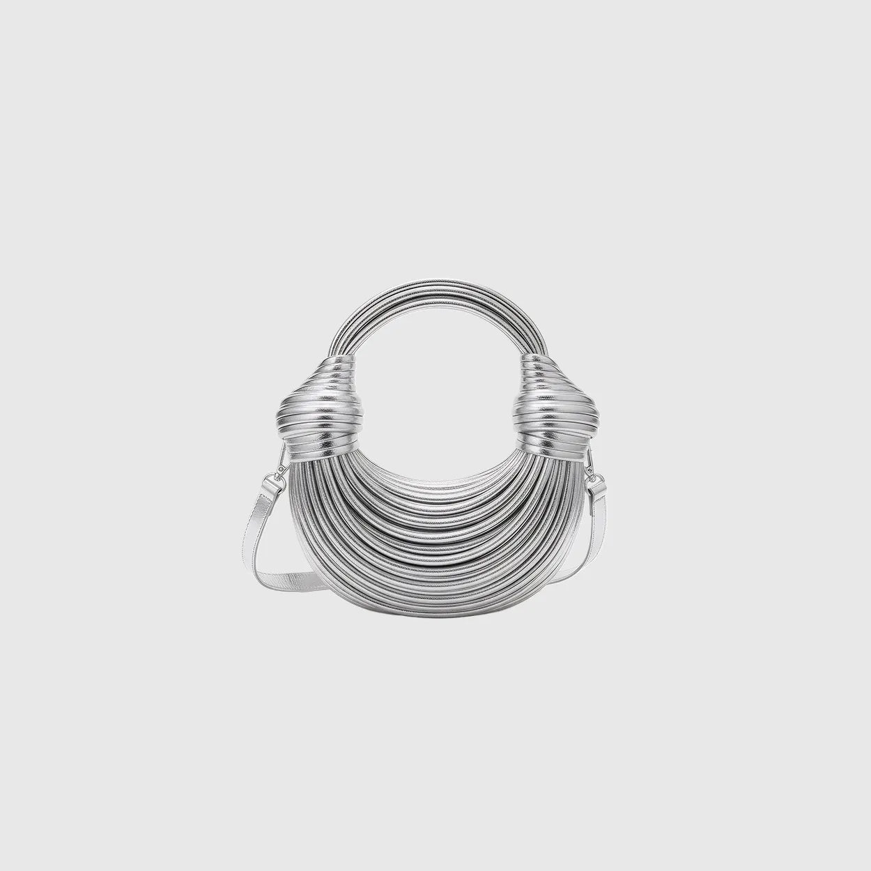 Shimmer in motion. This metallic PU evening bag glows in gold or silver with artful texture and graceful charm for weddings and nights that sparkle.