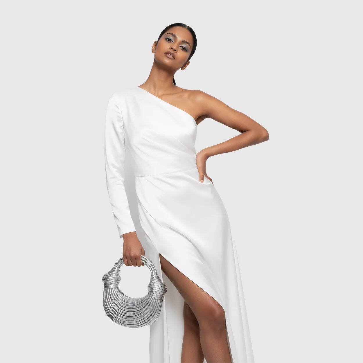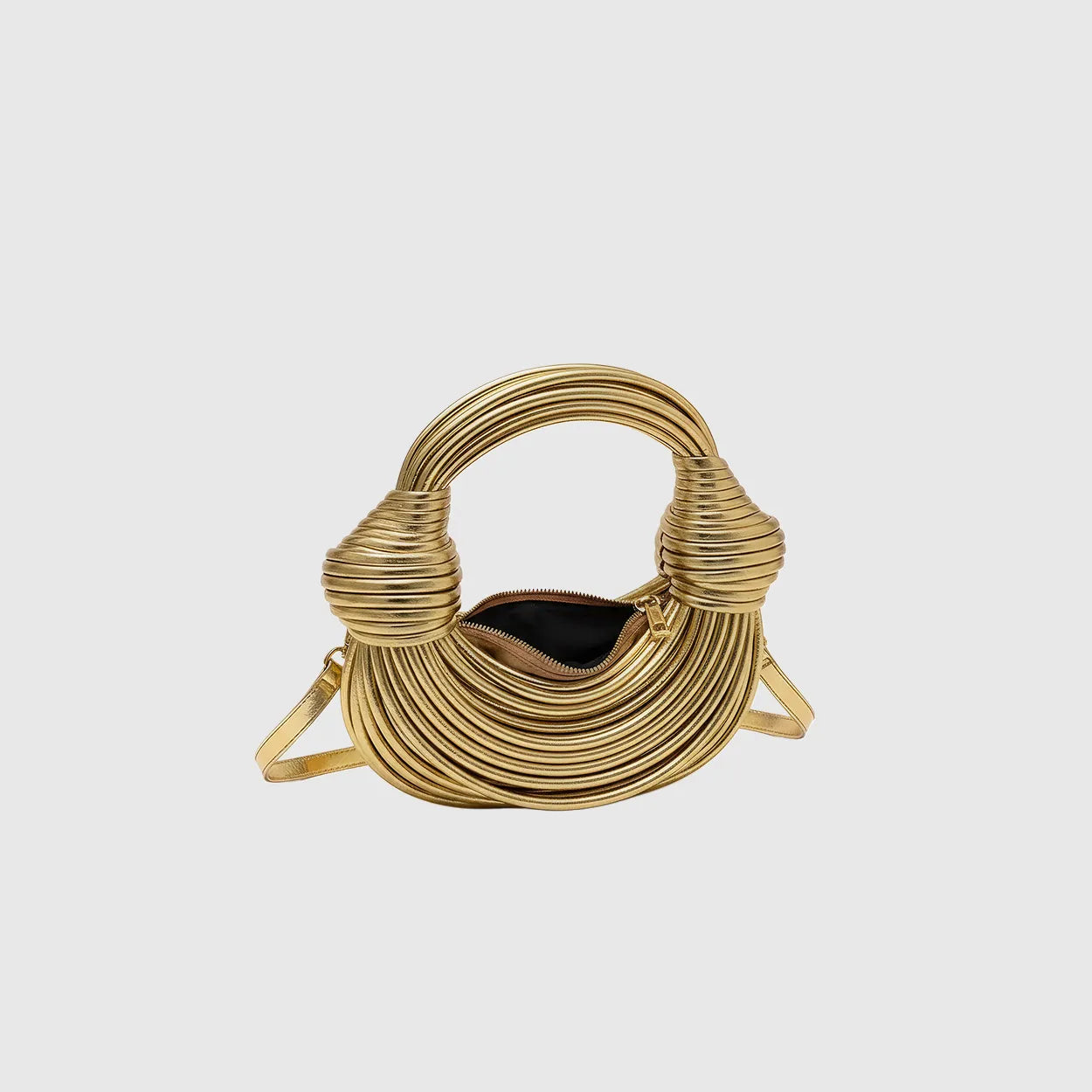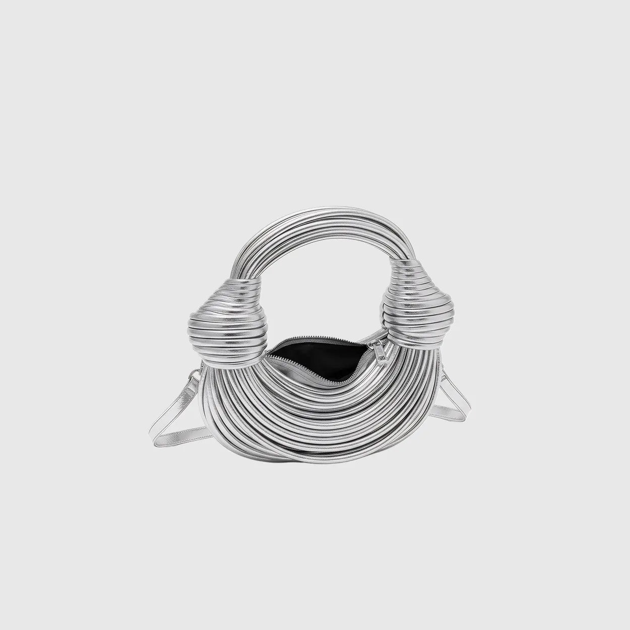 Shimmer in motion. This metallic PU evening bag glows in gold or silver with artful texture and graceful charm for weddings and nights that sparkle.
