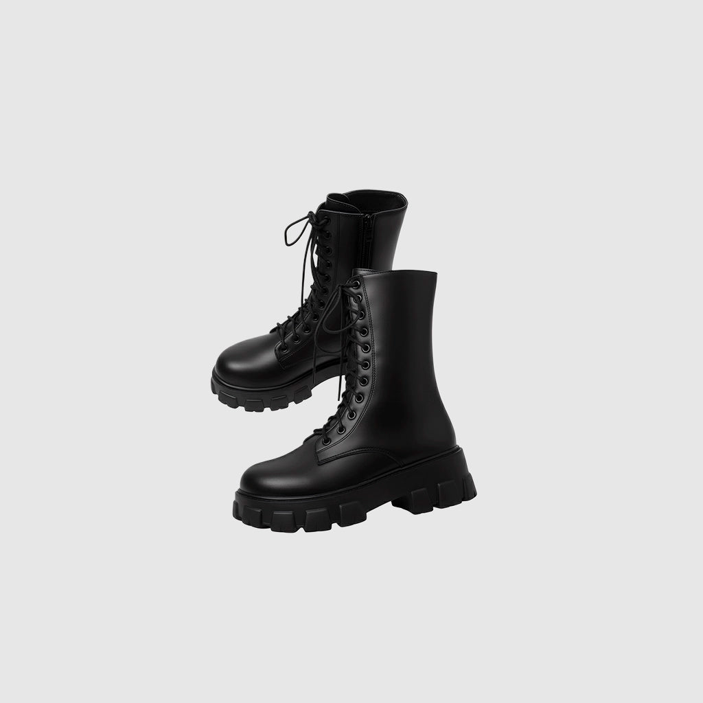 Monolo é atitude em forma de bota. Com o seu fecho frontal de atacadores, sola plataforma e silhueta robusta até ao meio da canela, combina o estilo biker com a usabilidade do dia a dia. Desde as camadas de outono até ao streetwear de inverno, Monolo dá a cada look aquela ousadia Chalisa sem medo.